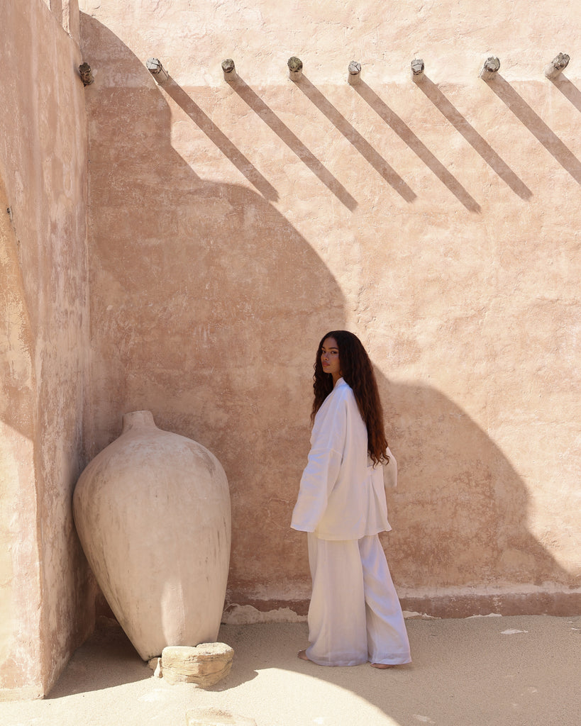 All pieces in our collections are designed in-house by our founder and hand-made by our growing team of women artisans. What began as a small-scale operation has evolved into a refined process rooted in intention, quality, and care.