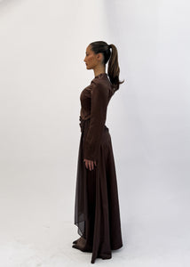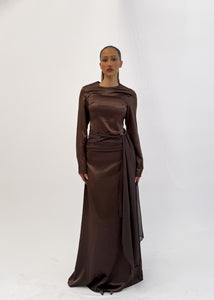 MIST SATIN TOP AND SKIRT SET - CHOCOLATE