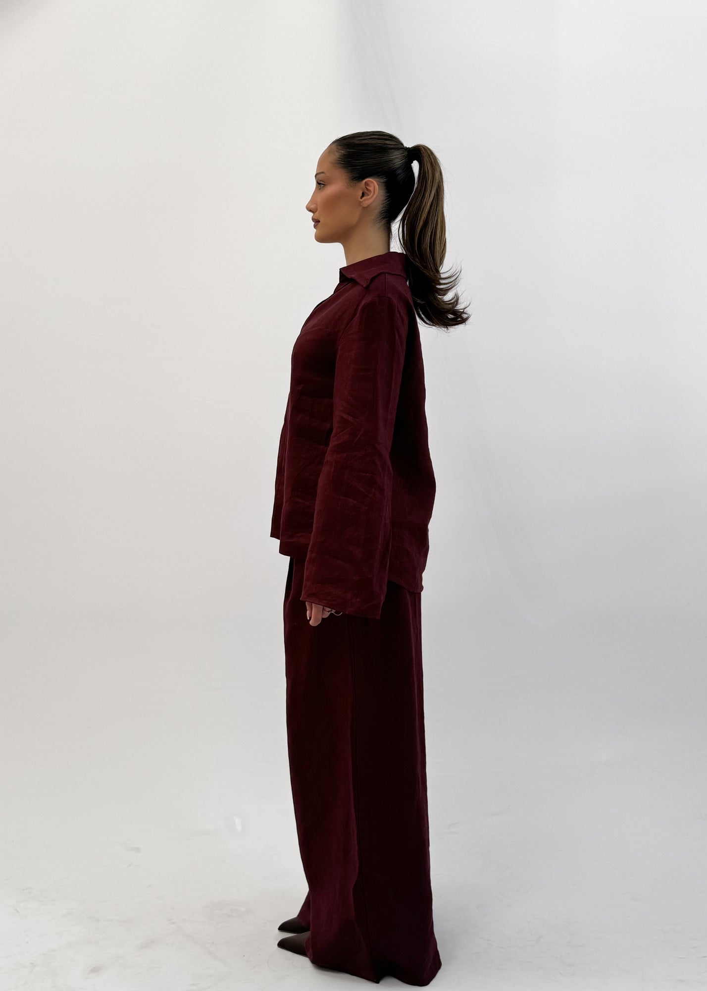 SIERRA BORDEAUX LINEN TOP AND PANT SET