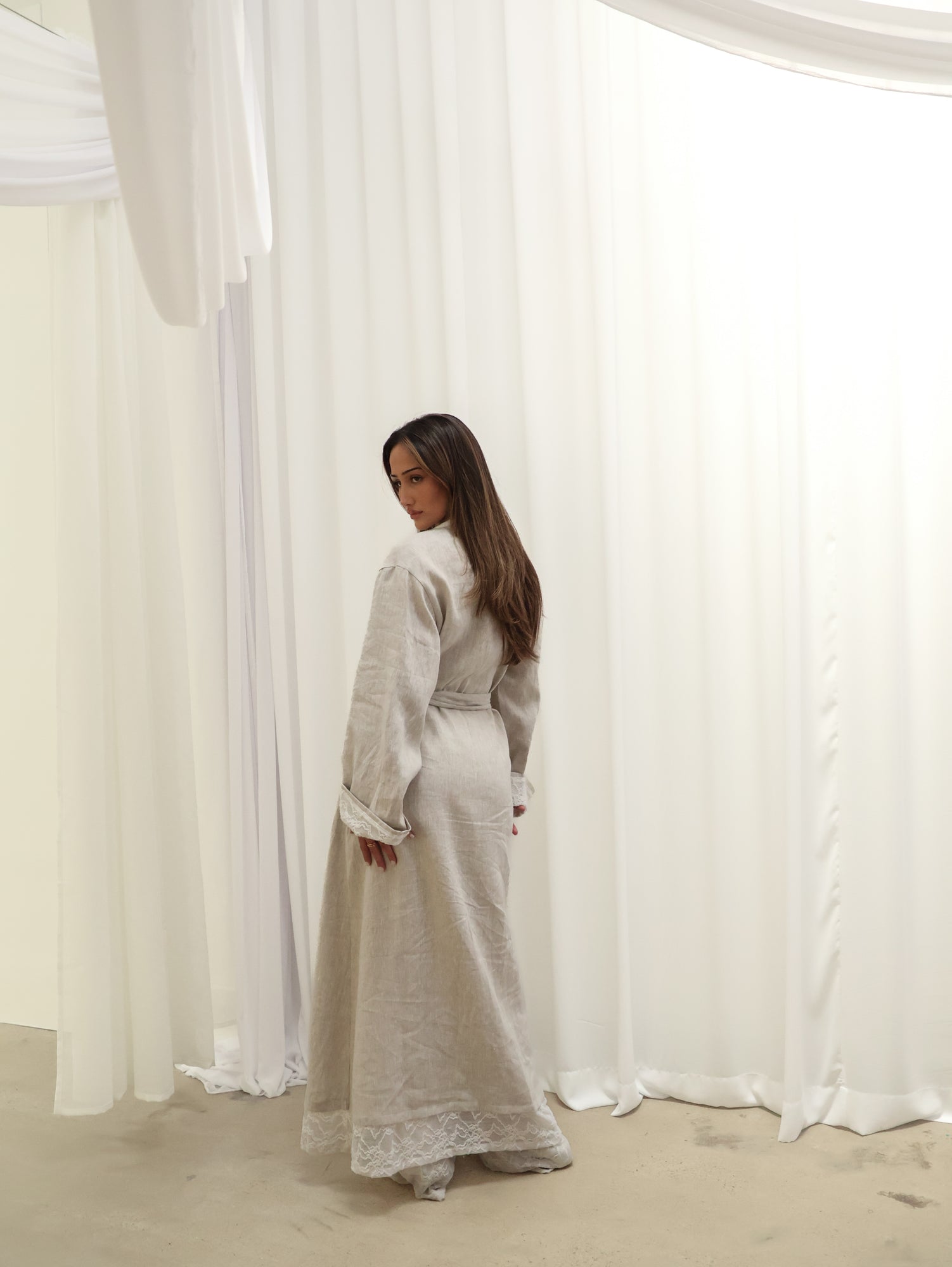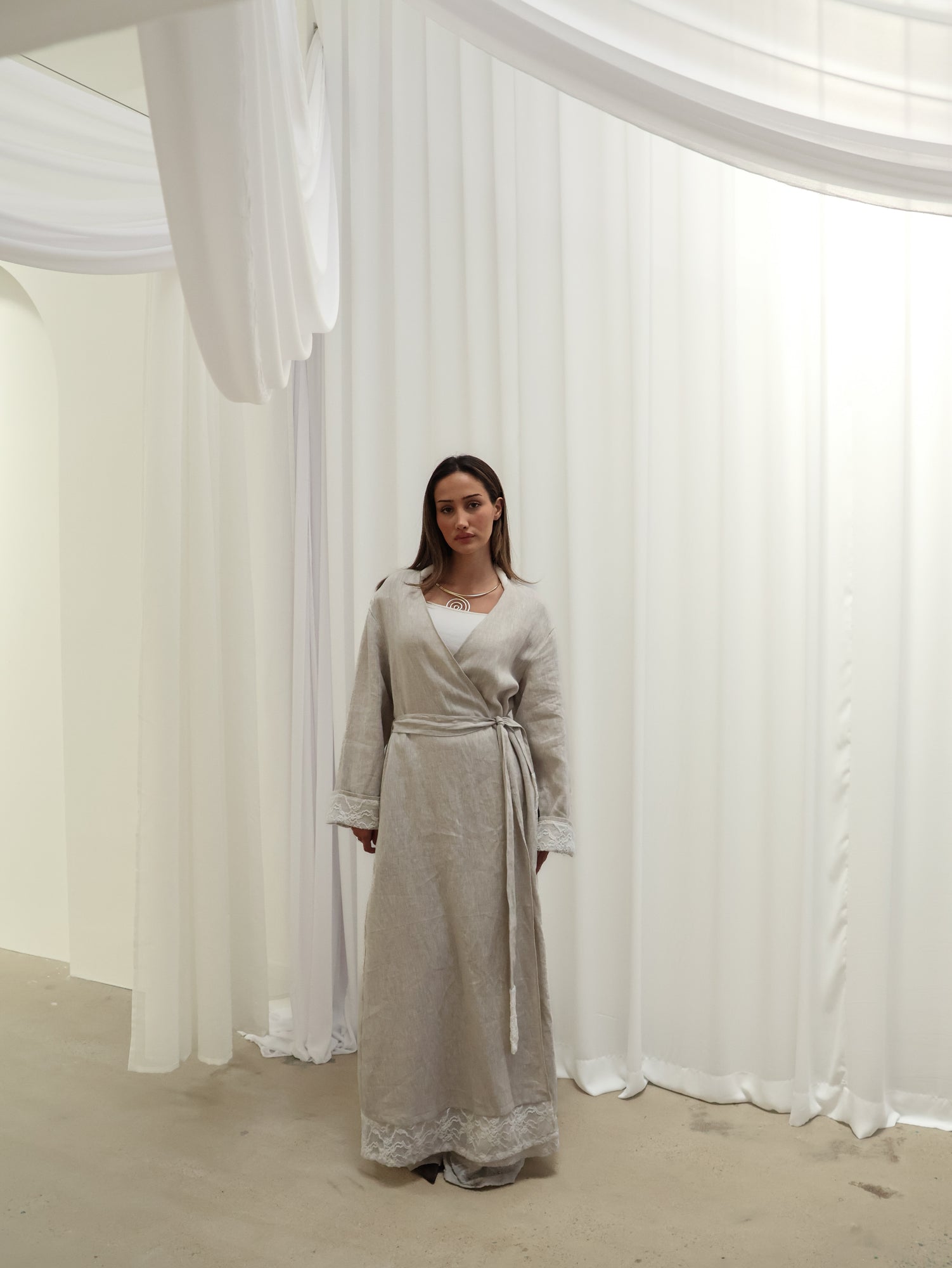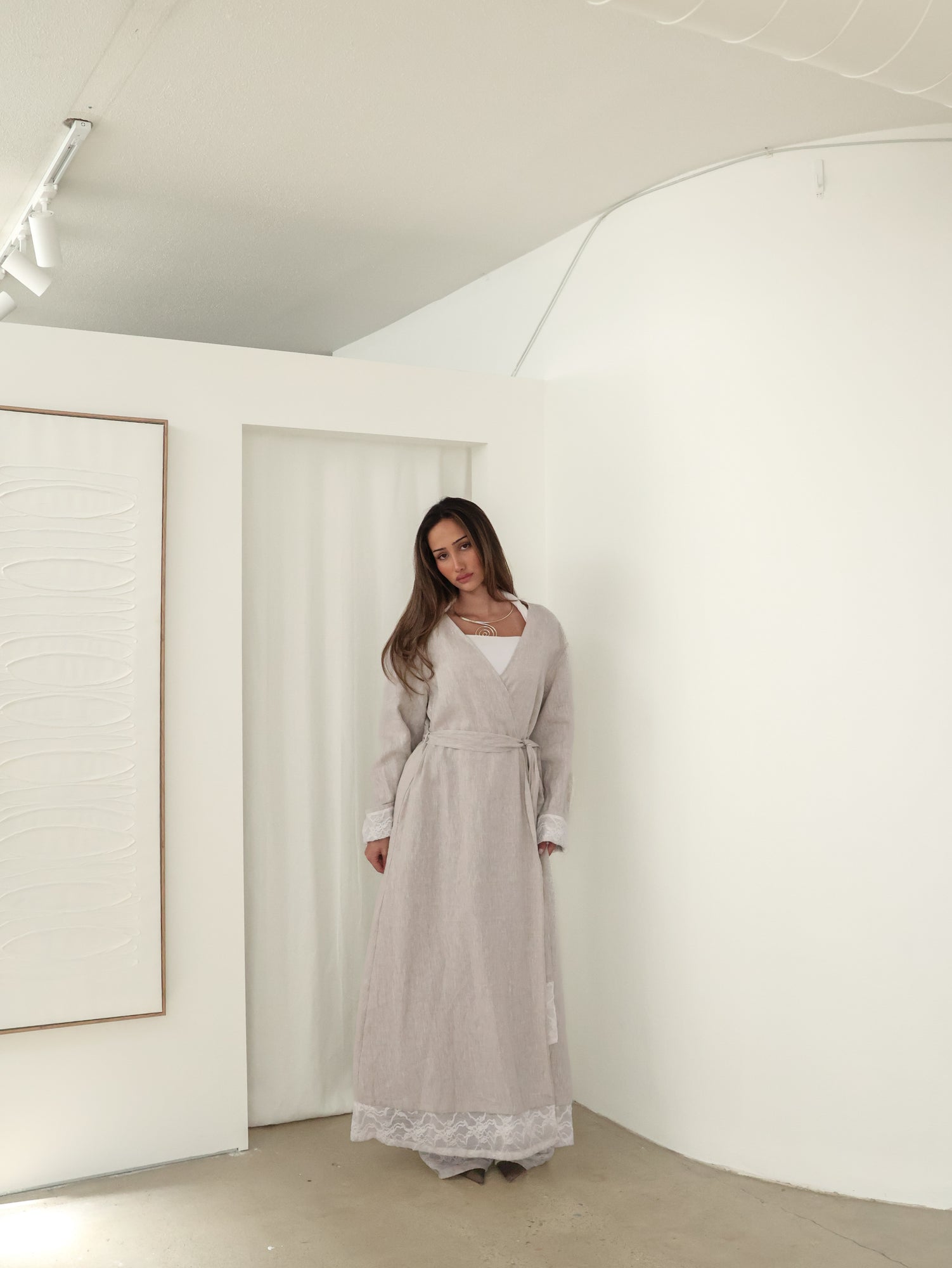 INEZ LACE HEM LINEN KIMONO (PRE-ORDER)