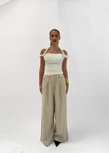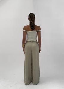 ALBA WIDE LEG LINEN TROUSER - CLAY